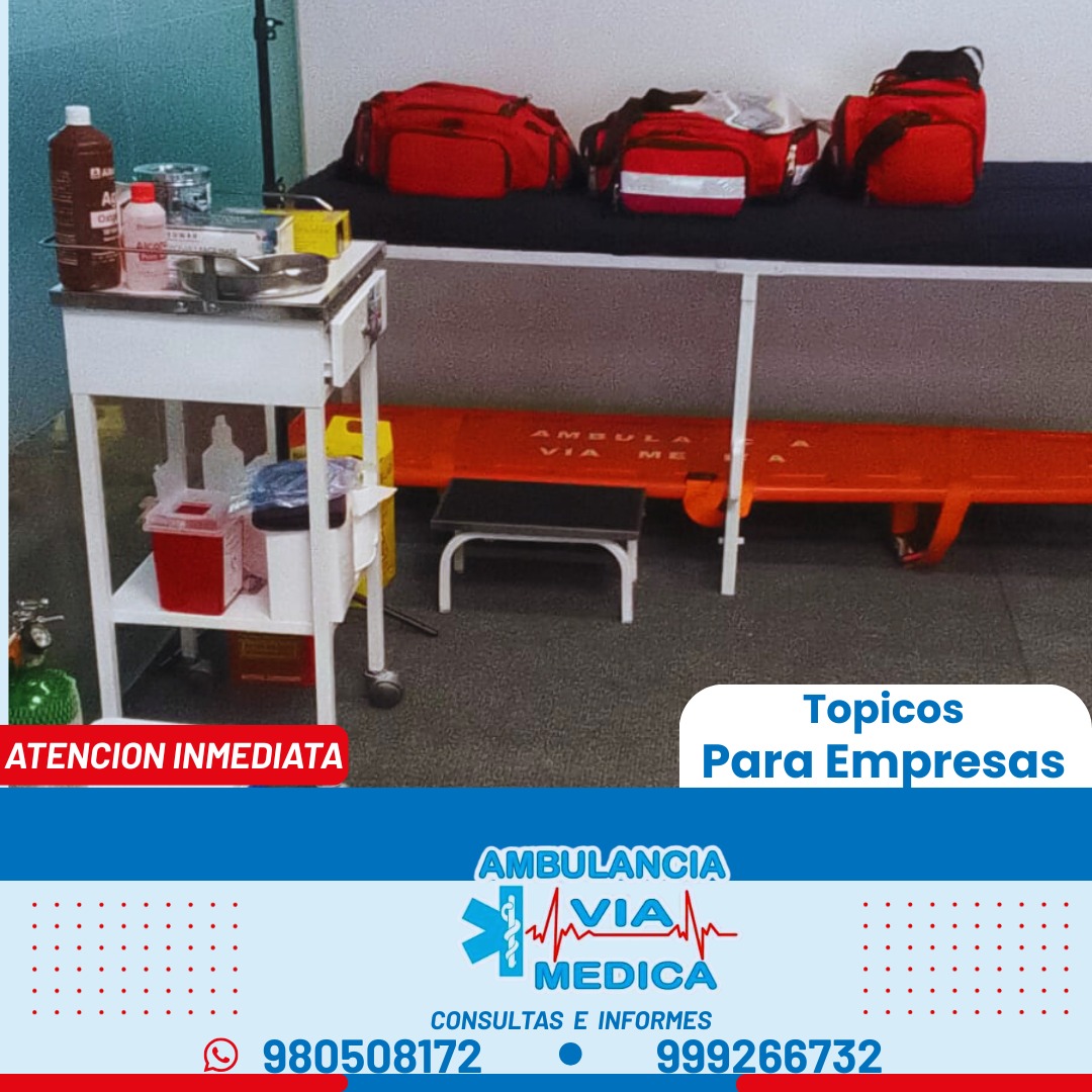 Nuestros tópicos médicos empresariales están totalmente equipados para la atención inmediata de emergencias, cumpliendo con estándares de seguridad y salud ocupacional, y cuentan con personal médico capacitado y entrenado para una respuesta oportuna y profesional.